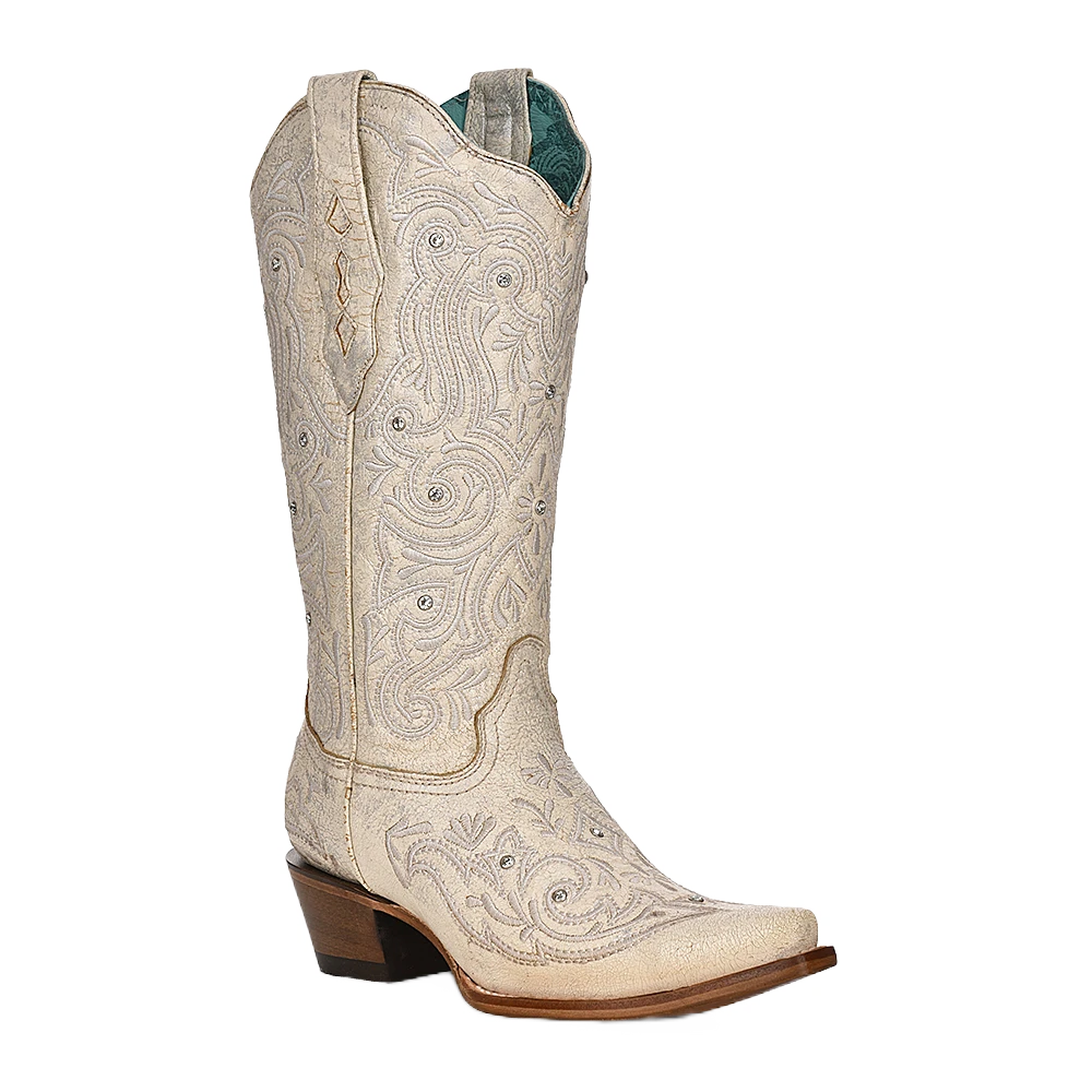 Corral Boots Corral Ladies Bone Crystal Embroidered White Snip Toe Boots Z5123