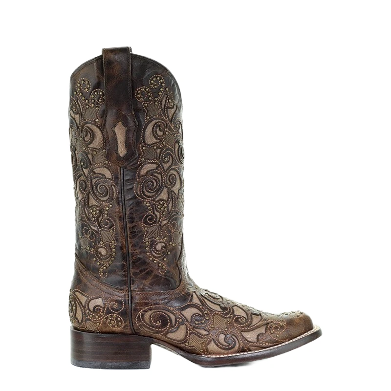 Corral Boots Corral Ladies Brown Inlay, Studs & Embroidery Boots A3326