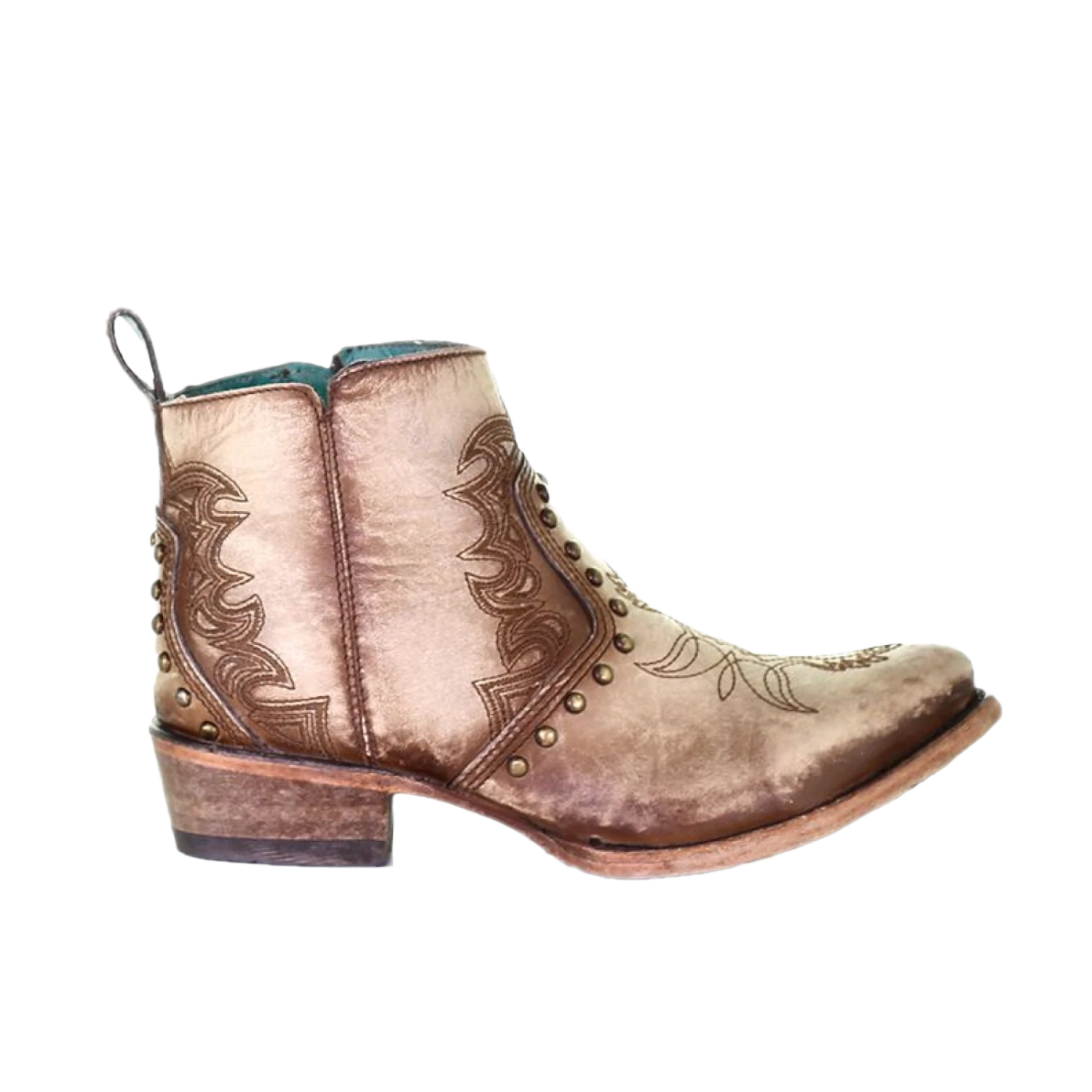Corral Boots Corral Ladies Embroidery & Stud Round Toe Beige Ankle Boot C3728