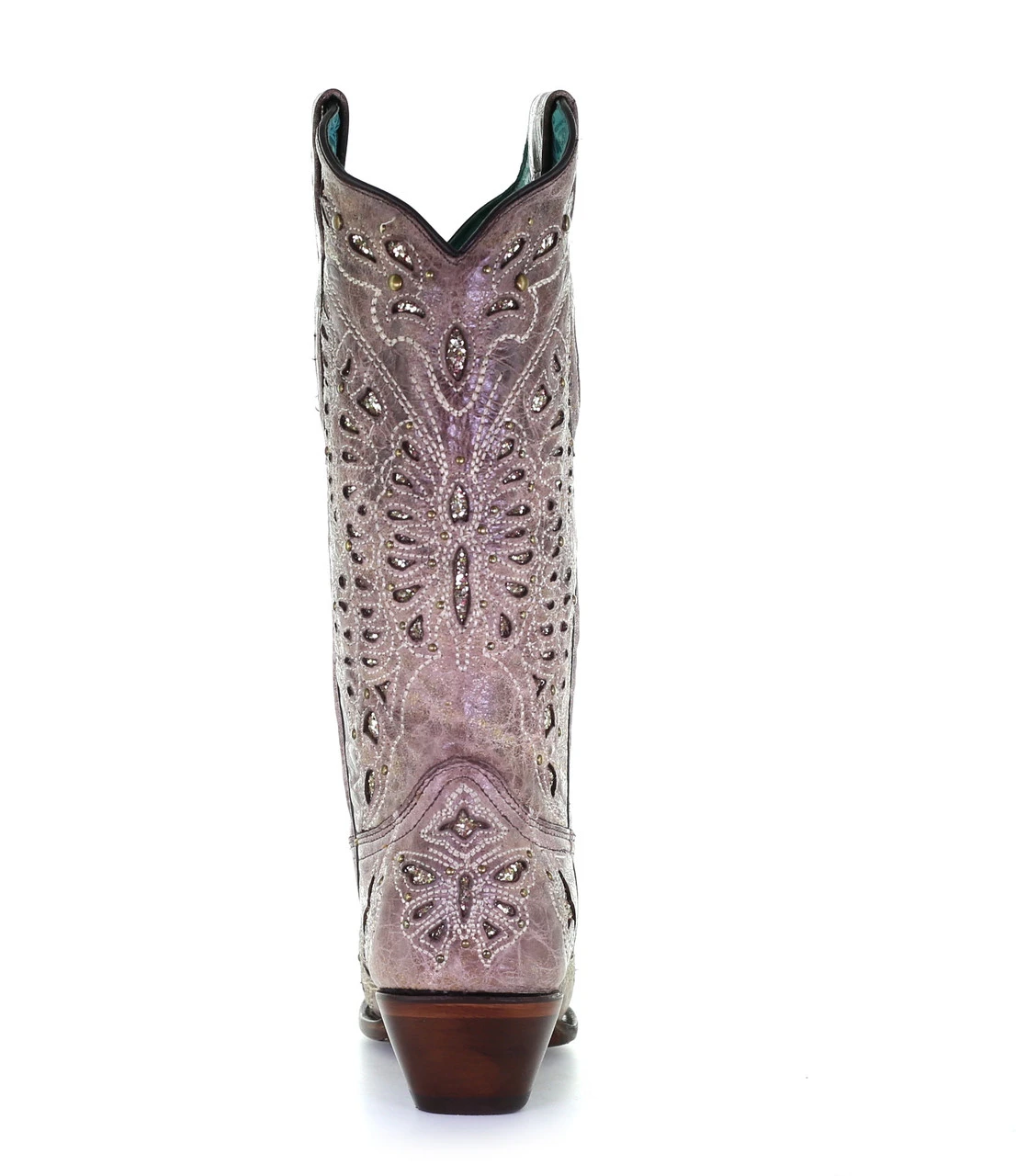 Corral Boots Corral Ladies Light Brown Glitter Butterfly Inlay & Embr. & Studs – A4088