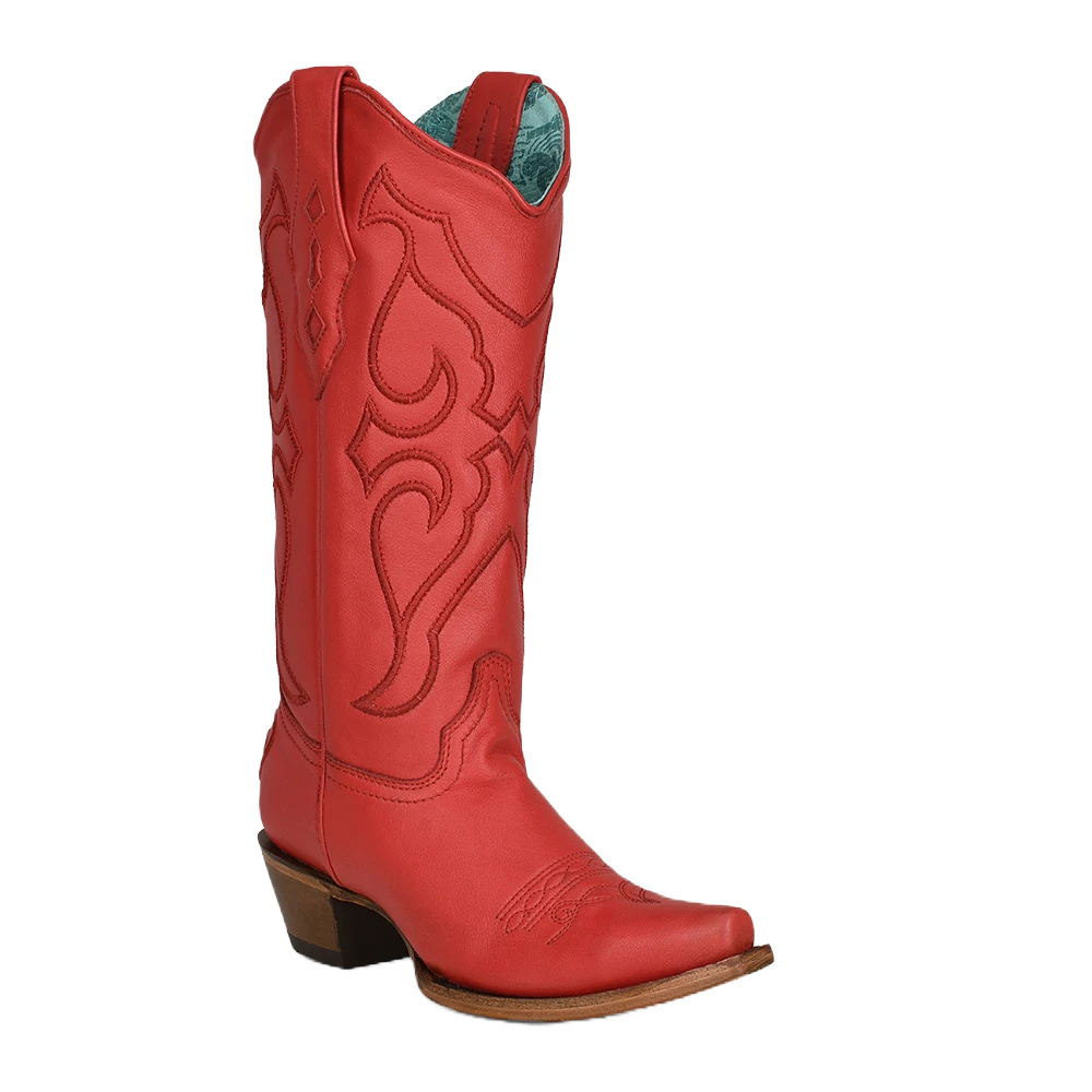 Corral Boots Corral Ladies Matching Stitch Pattern Snip Toe Red Leather Boots Z5073