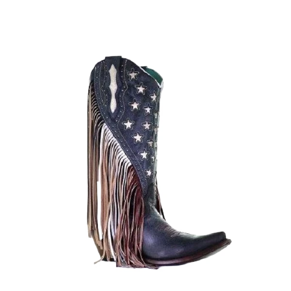 Be the first to review “Corral Boots Corral Ladies Navy Blue Lamb Stars Inlay & Studs & Fringe Boots C3749” Cancel reply