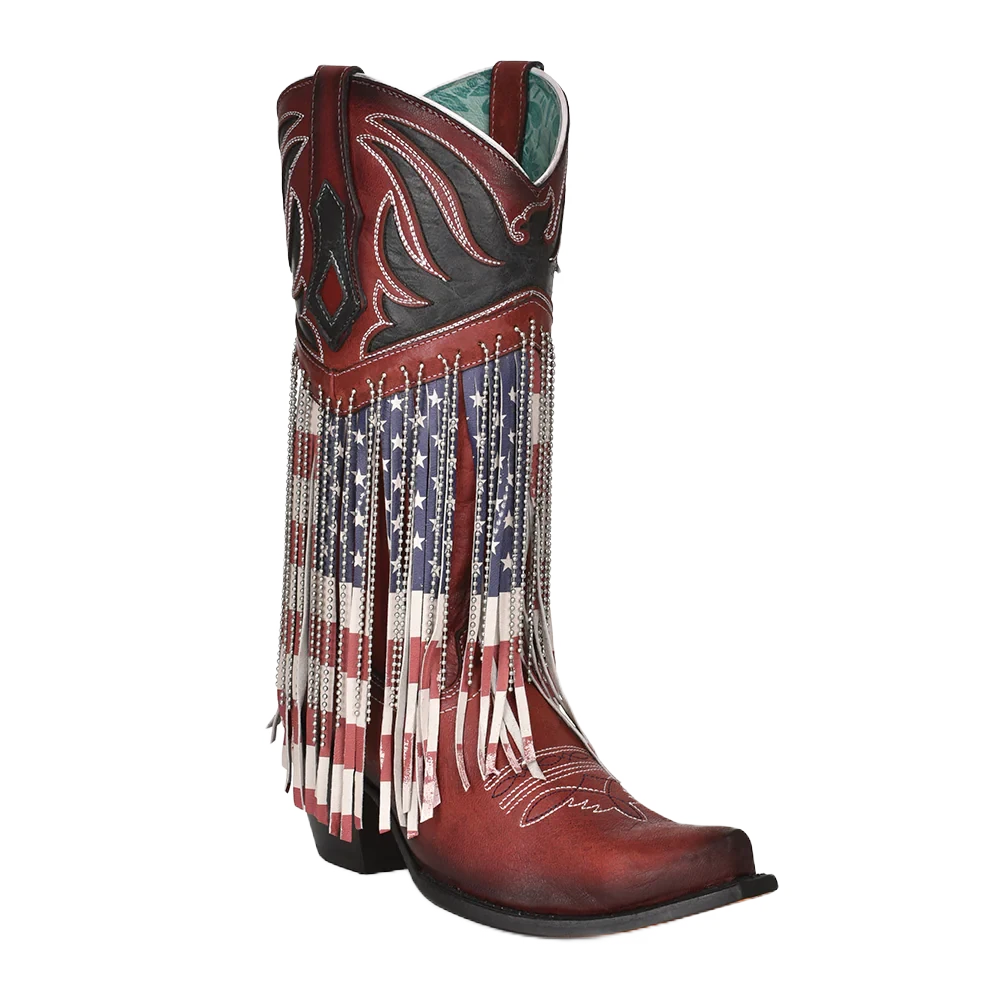 Corral Boots Corral® Ladies Stars & Stripes Fringe & Steel Chain Western Boots C4015