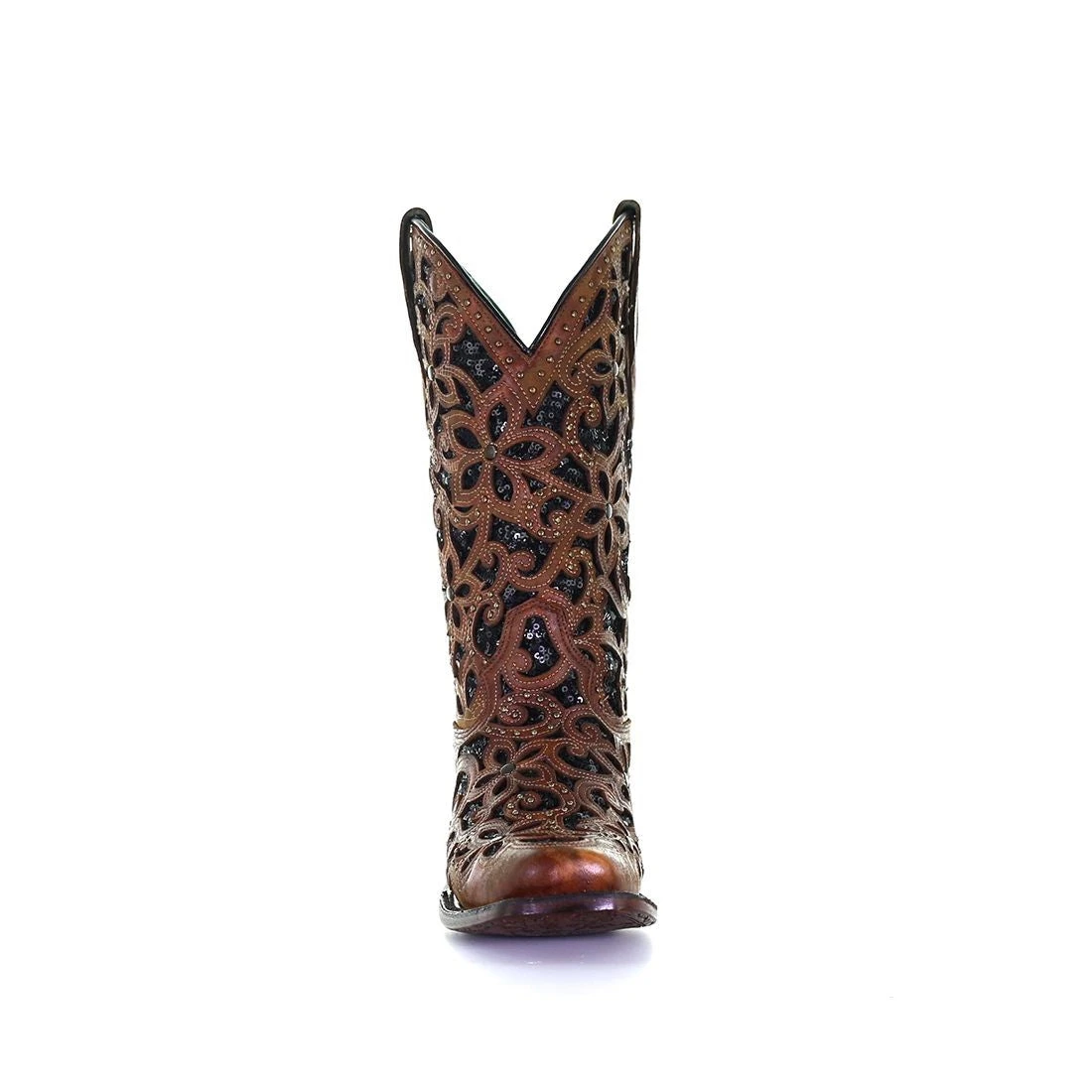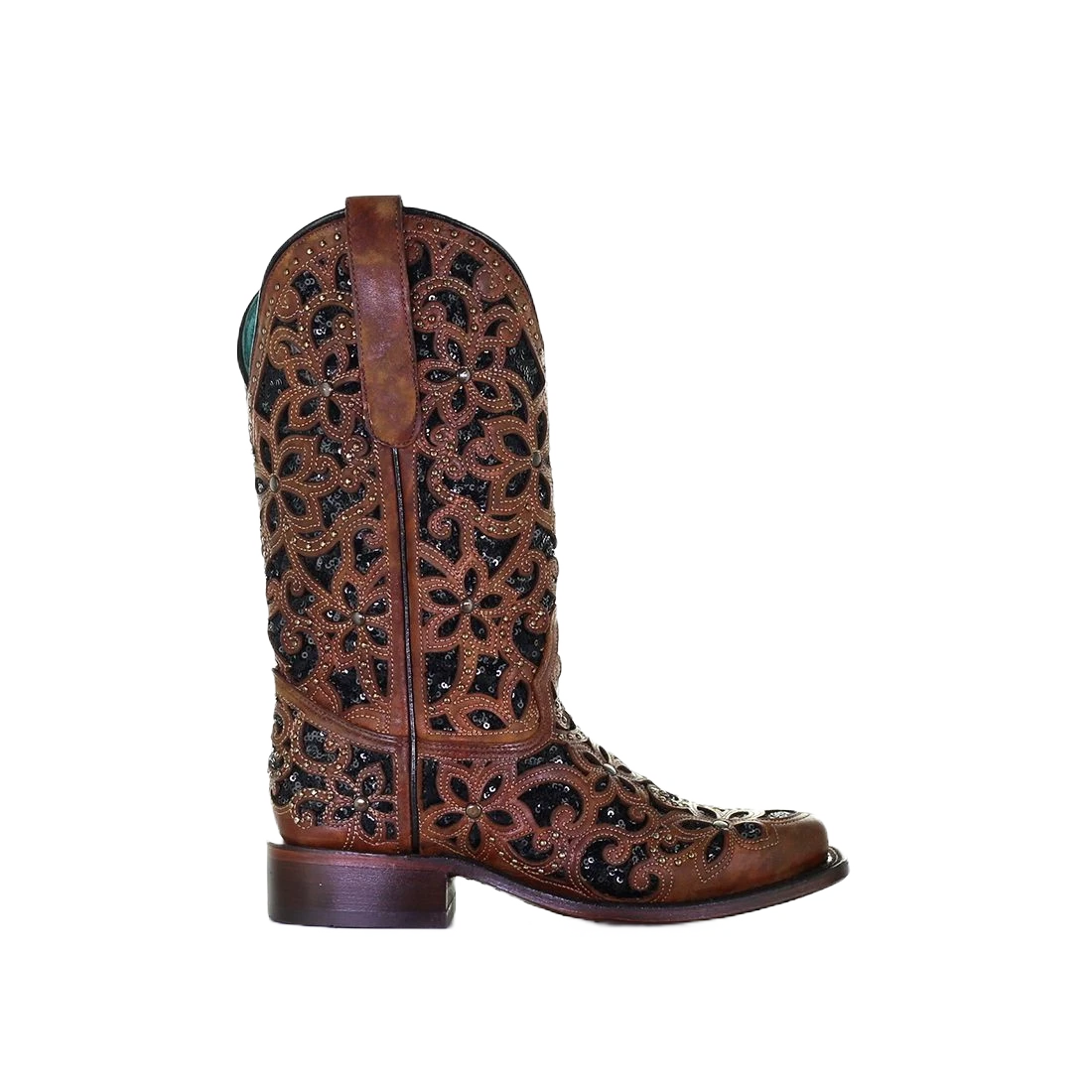 Corral Boots Corral Ladies Tan & Black Inlay Embroidery & Stud Boots A4129