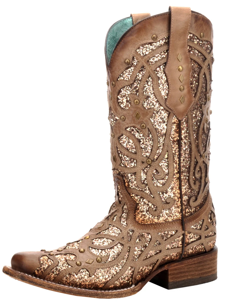 Corral Boots Corral Women’s Square Toe Orix Glittered Inlay & Studs – Brown