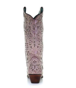 Corral Boots Ladies Corral 13″ White Overlay & Embr. Snip Toe W Studs & Crystals – A3837