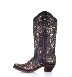 Corral Boots Corral Women’s Square Toe Inlay Cowgirl Boot W/Studs & Embroidery – Brown